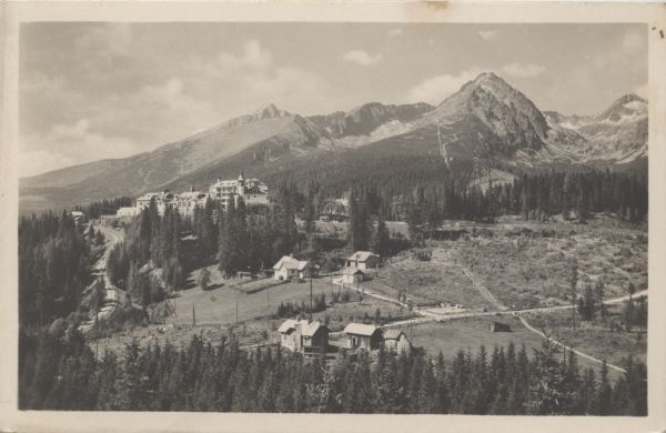 Widok na miejscowość Szczyrbskie Jezioro. W tle od lewej: Krywań, Ostra, Wielkie Solisko i Szczyrbski Szczyt.