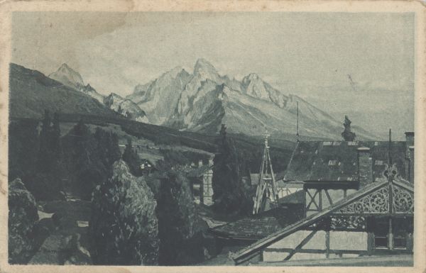DOLNÝ SMOKOVEC podµa orig. Jar. ©etelíka. Tatranské kúpele s pozadím Lomnického ątítu.
