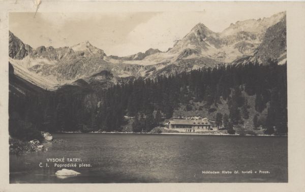 Pocztówka użyta w obiegu pocztowym, znaczek uszkodzony, korespondencja. Dodatkowo pieczęć: ŠTRBSKÉ PLESO.
