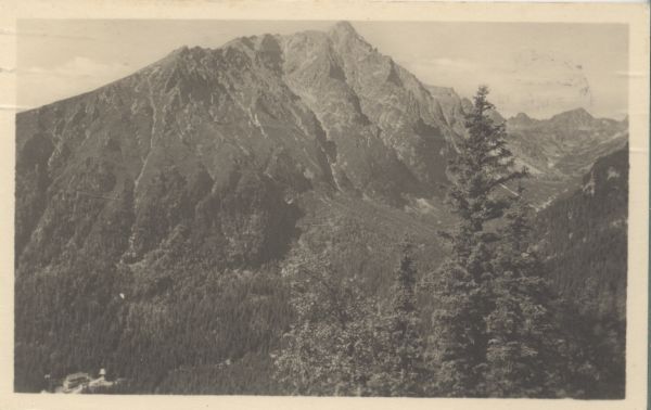 Tatry Wysokie - Widok z Magistrali na schronisko Kozica w Dolinie Starole¶nej. W tle Sławkowski Szczyt, Dzika Turnia i ¦wistowy Szczyt.