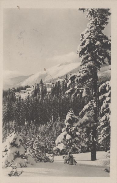 Szczyrbskie Jezioro. Hotele Mori w zimowej scenerii.