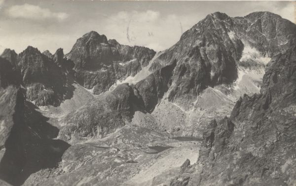 Tatry Wysokie - Dolina Małej Zimnej Wody. Schronisko Téry'ego. Pięć Stawów Spiskich, z prawej Lodowy Szczyt.