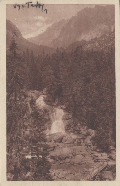 Tatry Wysokie. Wodospad w Dolinie Zimnej Wody. Tytuł również w języku: niem., węg.
