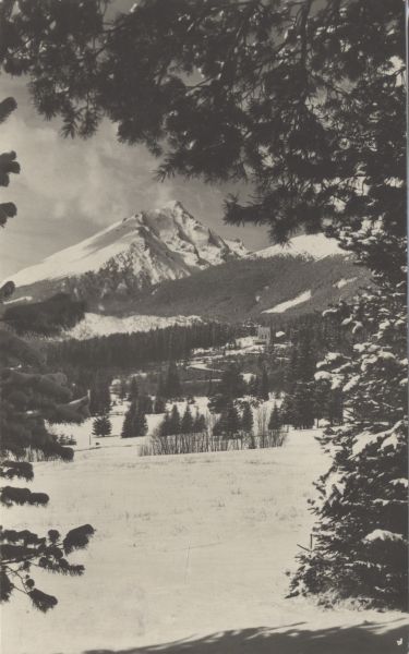 Tatrzańska Łomnica. Widoka na Sławkowski Szczyt w zimowej scenerii.