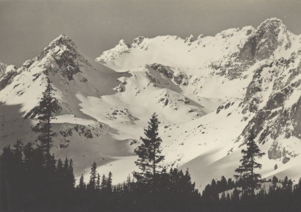 Zimowy widok z Doliny Mięguszowieckiej. Od lewej: Wołowiec Mięguszowiecki (dawniej Szczyt Olgi), Mięguszowiecki Szczyt Czarny, Hińczowa Turnia, Wołowy Grzbiet i Wołowa Turnia.