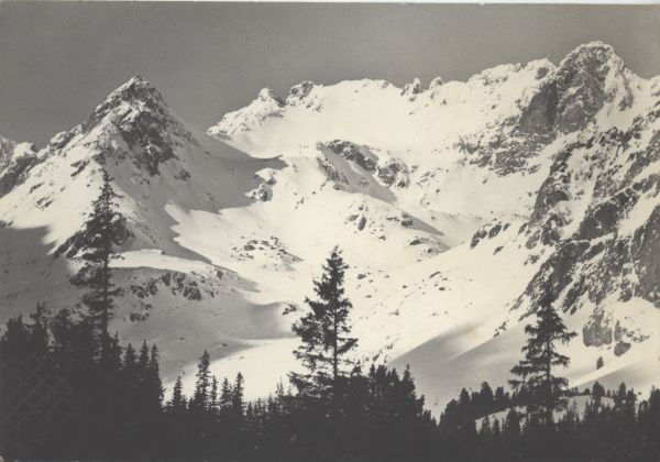 Zimowy widok z Doliny Mięguszowieckiej. Od lewej: Wołowiec Mięguszowiecki (dawniej Szczyt Olgi), Mięguszowiecki Szczyt Czarny, Hińczowa Turnia, Wołowy Grzbiet i Wołowa Turnia.