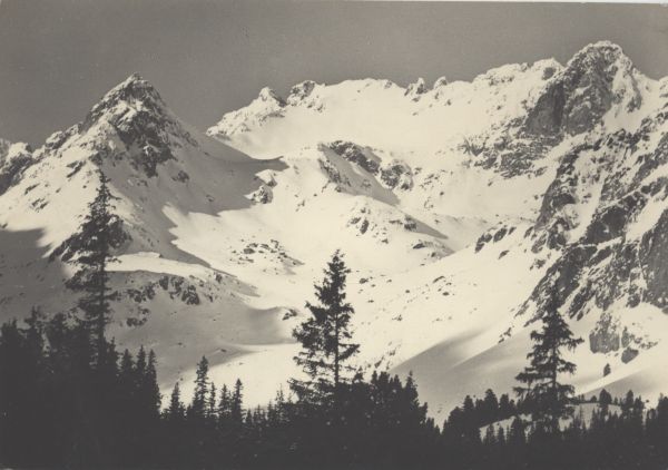 Zimowy widok z Doliny Mięguszowieckiej. Od lewej: Wołowiec Mięguszowiecki (dawniej Szczyt Olgi), Mięguszowiecki Szczyt Czarny, Hińczowa Turnia, Wołowy Grzbiet i Wołowa Turnia.