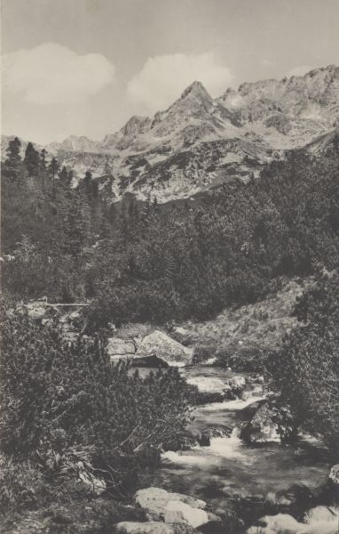 Dolina Mięguszowiecka. W tle Wołowiec Mięguszowiecki. Na pierwszym planie potok.