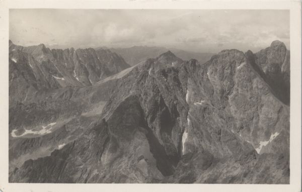 Widok z Rysów na Koprowy Wierch i Mięguszowieckie Szczyty.