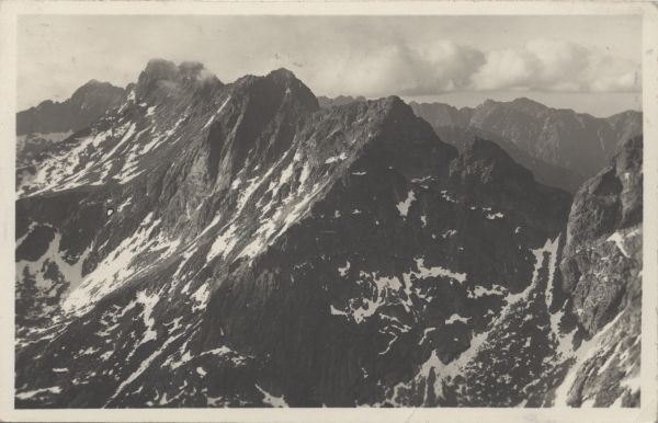 Widok z Kopy Popradzkiej na Cubrynę, Mięguszowiecki Szczyt i Żabi Koń.