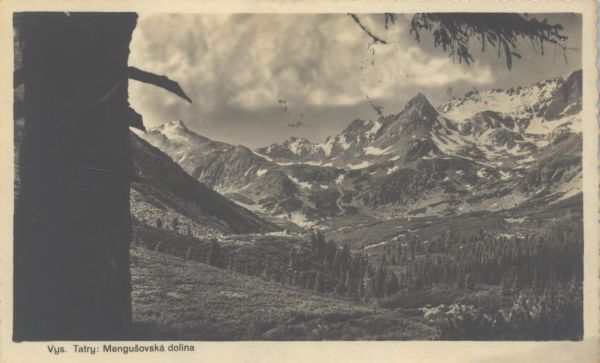 Widok na Dolinę Mięguszowiecką. W tle Wołowiec Mięguszowiecki. Pod zdjęciem tytuł.