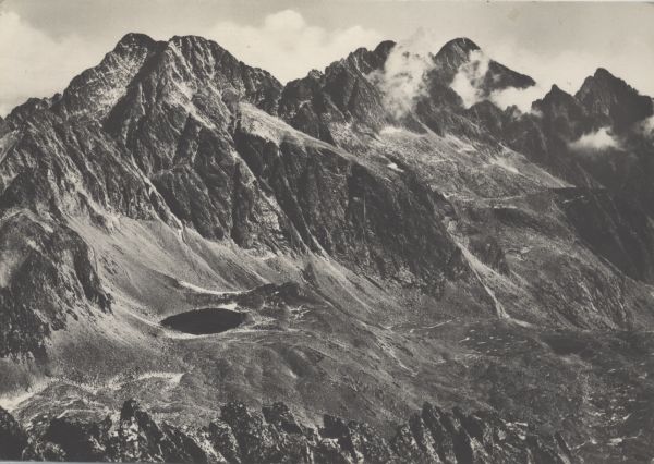 VYSOKÉ TATRY - poh”ad z Vęchodnej Vysokej na severovęchod: „adovę (2630 m), Malę „adovę (2611 m), Javorovę (2424 m), Pyčnę (2595 m), Lomnickę čtít (2634 m), Prostrednę hrot (2440 m) a „adové pleso (2052 m)