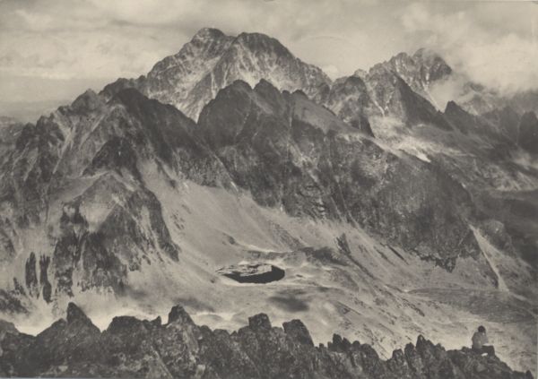 VYSOKÉ TATRY - poh”ad z Vęchodnej Vysokej na vęchod. Nad „adovęm plesom (2052 m) vo Ve”kej Studenej doline. Javorové čtíty (2424 m), za nimi Malę „adovę (2611 m), „adovę (2630 m). ©iroká veŸa (2466 m), Lastovièia veŸa (2625 m) a Lomnickę čtít (2634 m).