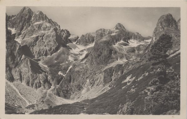 Vysoké Tatry - Lastovičia veža 2625 m Baranie rohy 2536 m. Čierny štít 2436 m a Jastrabia veža 2139 m.