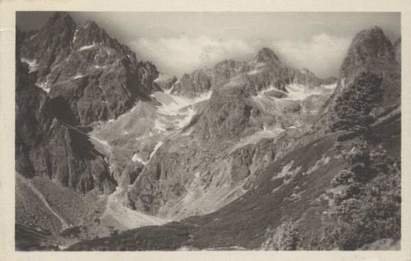 Vysoké Tatry - Lastovičia veža 2625 m Baranie rohy 2536 m. Čierny štít 2436 m a Jastrabia veža 2139 m.