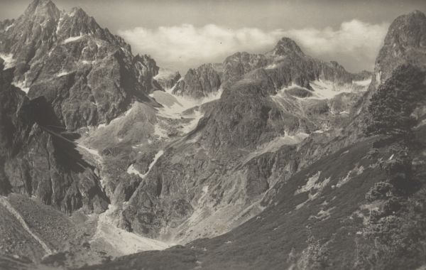 Vysoké Tatry - Lastovičia veža 2625 m. Baranie rohy 2536 m. Čierny štít 2436 m a Jastrabia veža 2139 m.