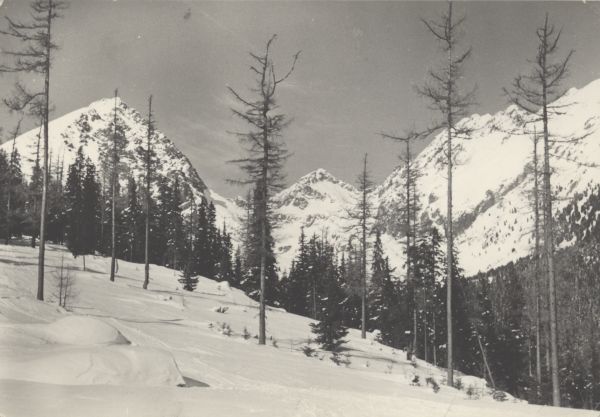 VYSOKÉ TATRY Pohµad z úbočia Soliska do doliny Mlynica. Vµavo ©trbské Solisko (2301 m), uprostred ©trbský ątít (2385 m), vpravo hrebeň Báąt
