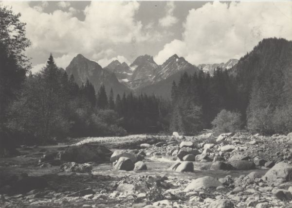 Vysoké Tatry Pohµad z Bielovodskej doliny na Mlynára (2170 m), vµavo, Vysokú (2560 m), Rysy (2499 m), Niľné Rysy (2438 m), a Niľný ®abí ątít (2098 m)