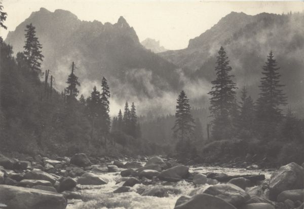 Tatrzański Park Narodowy [Słowacja]. Widok z Doliny Białej Wody na Białczański Skoru¶niak (po lewej) i Żabi Szczyt Wyżni nad Dolin± Żabich Stawów Białczańskich.