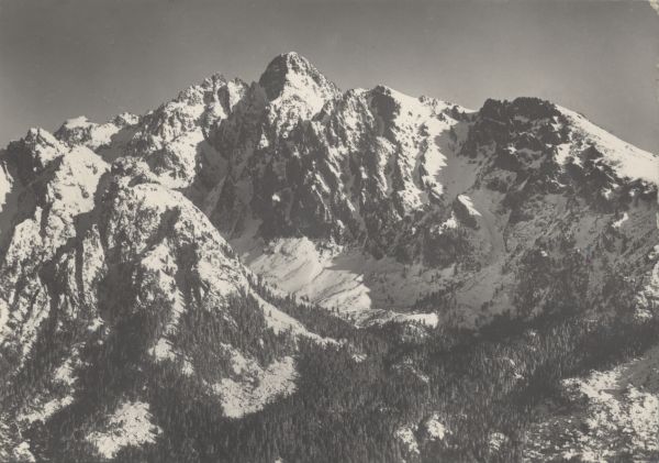 Widok na Dolinê Małej Zimnej Wody i Łomnicê w zimowej scenerii.