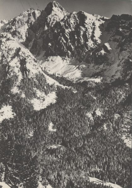 Tatry Wysokie - Dolina Małej Zimnej Wody. Łomnica z grani Sławkowskiego Szczytu. Tytuł również w języku: ros., niem., ang.