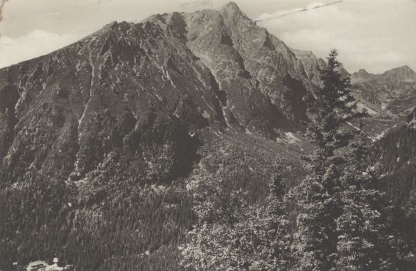 Widok z Magistrali Tatrzańskiej na schronisko Kozica na Polanie Starole¶nej. Z prawej Dolina Starole¶na. W tle Sławkowski Szczyt, Dzika Turnia i ¦wistowy Szczyt.