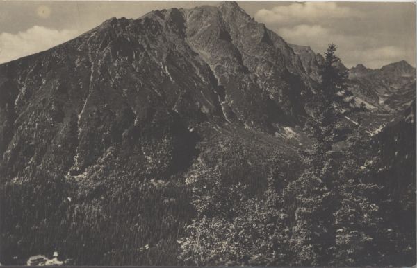 Widok z Magistrali Tatrzańskiej na schronisko Kozica na Polanie Starole¶nej. Z prawej Dolina Starole¶na. W tle Sławkowski Szczyt, Dzika Turnia i ¦wistowy Szczyt.