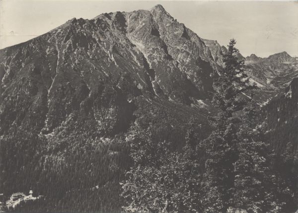 Tatry Wysokie - widok z Magistrali: Schronisko Kozica w Dolinie Starole¶nej. W tle Sławkowski Szczyt, Dzika Turnia i ¦wistowy Szczyt.
