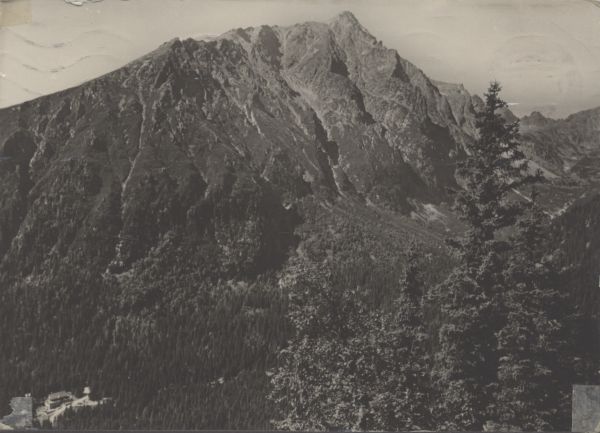 Tatry Wysokie - widok z Magistrali: Schronisko Kozica w Dolinie Starole¶nej. W tle Sławkowski Szczyt, Dzika Turnia i ¦wistowy Szczyt.