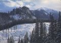 Indeks tematyczny: zima ; dolina ; narciarz ; pejzaż ; szałas ; szczyt ; szlak turystyczny ; turysta ; turystyka