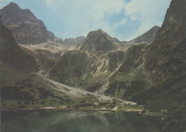 Tatry Wysokie. Zielony Staw Kieżmarski jest malowniczo położony na wysokości 1545 m n.p.m. pod północną ścianą Małego Kieżmarskiego Szczytu i pod Jastrzębią Turnią. Stoi przy nim schronisko im. Brnčala. Tytuł również w j. niem., ang.