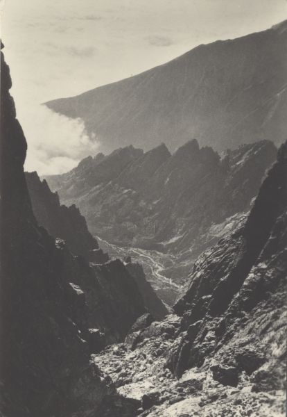 Tatry Wysokie - widok z Łomnicy do Doliny Małej Zimnej Wody. Tytuł również w języku: ros., niem., ang.