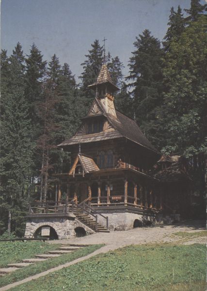 TATRY. Jaszczurówka - kaplica zbudowana w l. 1907-08 wg projektu Stanisława Witkiewicza.