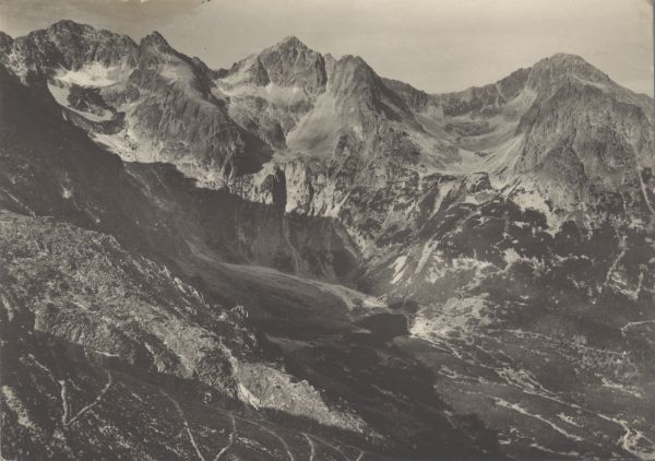 Kotlina Zielonego Stawu Kieżmarskiego widziana z Rakuskiej Czuby. Od lewej: Dzika Dolina z Baranimi Rogami, Dolina Jastrzębia z Kołowym Szczytem i Dolina Jagnięca z Jagnięcym Szczytem.