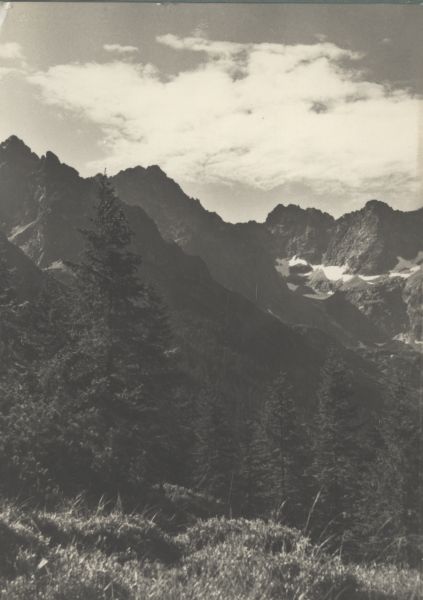 Tatry Wysokie. Widok z Doliny Białej Wody na Zadni Gerlach, Batyżowiecki Szczyt i Kaczy Szczyt. Błędnie podano Zadni Gerlach, faktycznie Litworowy Szczyt.
