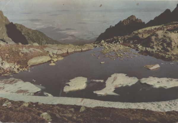 Tatrzański Park Narodowy [Słowacja]. Dolina Małej Zimnej Wody. Widok od Małego Stawu Spiskiego do Spiskiej Kotliny. Tytuł również w języku: ros., ang., niem.