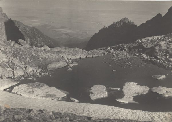 TATRANSKĘ NÁRODNĘ PARK. Malé Spičské pleso (1990 m) v Malej Studenej doline. Poh”ad do Popradskej doliny, v”avo Lomnickę hrebeò, vpravo Prostrednę hrebeò (2440 m).