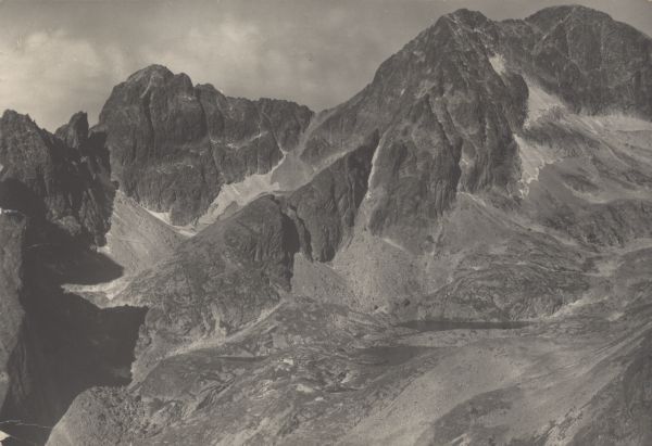 TATRANSKÝ NÁRODNÝ PARK. Pohµad z Lomnického sedla do Malej Studenej doliny: ©iroká veľa, Malý Ąadový ątít (2611 m) a Ąadový ątít (2630 m).
