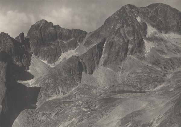 TATRANSKÝ NÁRODNÝ PARK. Pohµad z Lomnického sedla do Malej Studenej doliny: ©iroká veľa, Malý Ąadový ątít (2611 m) a Ąadový ątít (2630 m).