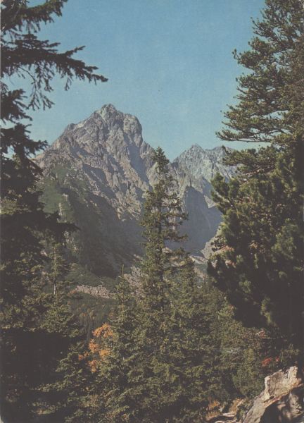 Tatry Wysokie. Widok z Magistrali Tatrzańskiej do Doliny Małej Zimnej Wody. Tytuł również w języku: niem., ang., ros.