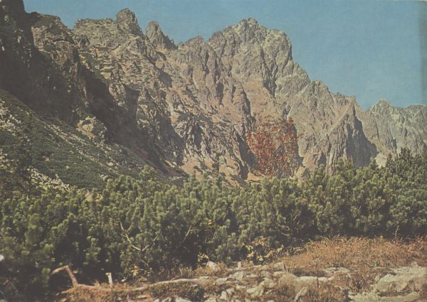 Pośrednia Grań z Doliny Małej Zimnej Wody. Na pierwszym planie łan kosodrzewiny.