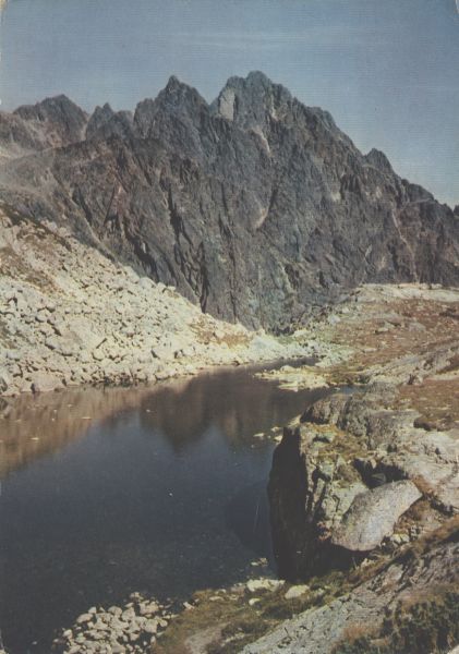 Tatrzański Park Narodowy [Słowacja] - Widok od Harnaskiego Stawu na Żółty Szczyt i Pośrednią Grań. Tytuł również w języku: ros., ang., niem.