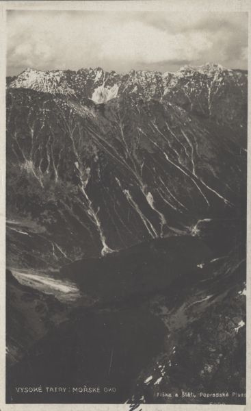 Pocztówka użyta w obiegu pocztowym, korespondencja. Logo wydawcy. Dodatkowo pieczęć schroniska: CHATA U POPRADSKÉHO PLESA 1613 m n.m.
