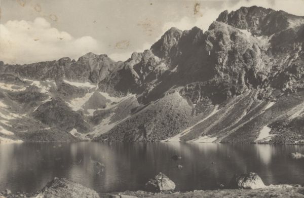 Widok na Zmarzły Staw Mięguszowiecki w Dolinie Złomisk i Grań Kończystej.