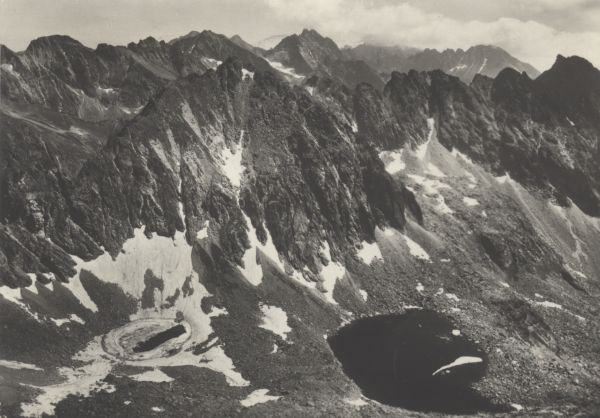 Tatry Wysokie - Widok z Furkotu na wschód ponad Okr±gły Staw, Capi Staw i Szczyrbski Szczyt. Tytuł również w języku: ros., niem., ang.