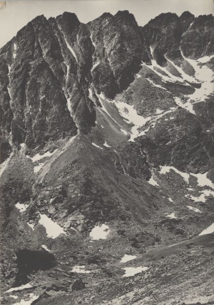 TATRY WYSOKIE - widok ze Skrajnej Baszty na Staw pod Skokiem i grań Solisk: Szczyrbskie i Małe Solisko, Skrajna i Zadnia Soliskowa Turnia, Wielkie Solisko.