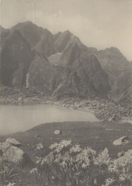 Na pierwszym planie omieg górski (Doronicum austriacum) i Litworowy Staw. W tle od lewej Rysy, Niżnie Rysy i Wyżni Żabi Szczyt.