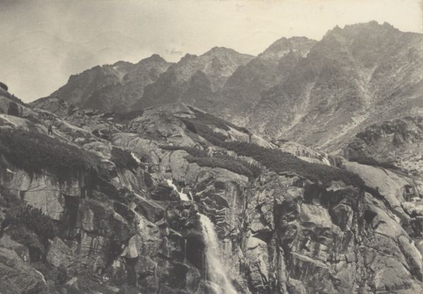 TATRANSKÝ NÁRODNÝ PARK Dolina Mlynica, vodopád Skok (1800 m), v pozadí hrebeň Bášt
