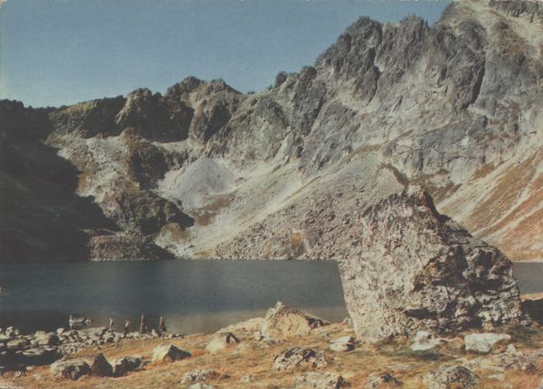 TATRZAŃSKI PARK NARODOWY [Słowacja]. - Wielki Staw Hińczowy w Hińczowej Dolinie. Od lewej Cubrynka, Cubryna i Mięguszowiecki Szczyt. Tytuł również w języku: ros., niem., ang.