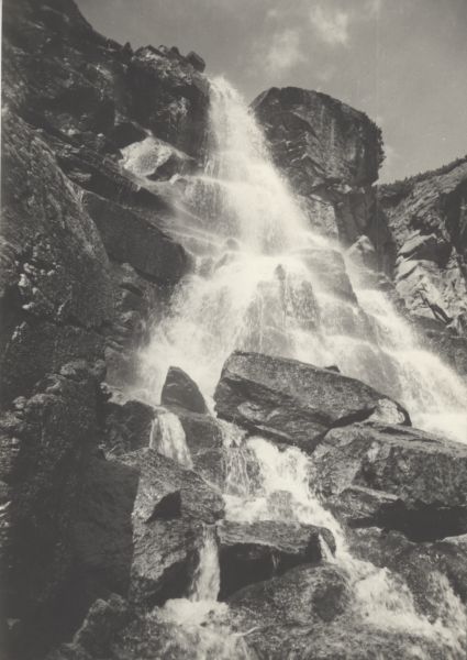 TATRY WYSOKIE. Wodospad Skok spadający ze skalnego tarasu w Dolinie Młynickiej.